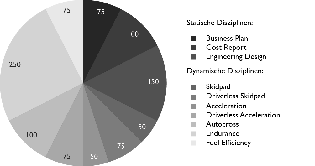 Während sich die statischen hauptsächlich mit dem wirtschaftlichen Aspekten einer Fahrzeugkonstruktion befassen, geht es bei den dynamischen um die technische und physikalische Belastungsprobe für den Rennwagen. In beiden Teilbereichen können essentielle Punkte für das spätere Gesamtergebnis gesammelt werden. Resultierend geht es demnach nicht um die Konzeption eines lediglich schnellen oder effizienten Wagens, sondern um das Zusammenspiel multipler Aspekte und Teilleistungen. Es zählt eine gelungene Kombination aus betriebswirtschaftlicher Ausarbeitung und Ingenieurs-technischem Wissen und Können: